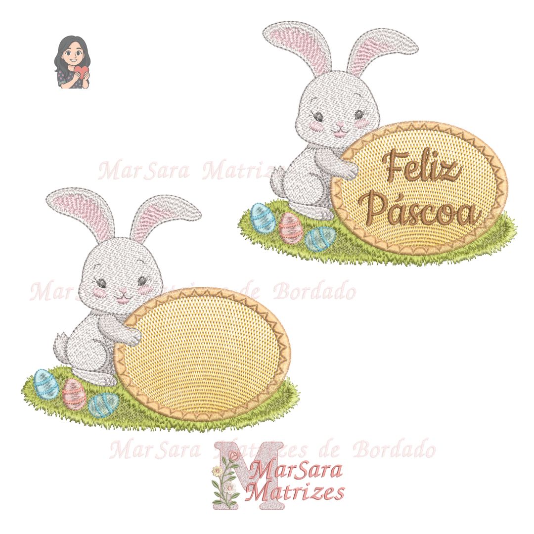 Matriz de Bordado – Coelho de Páscoa com plaquinha
