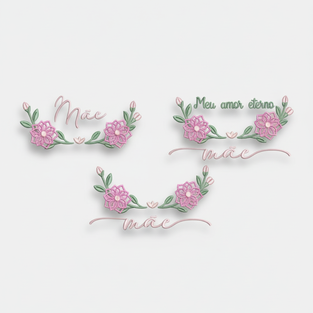 Kit com 3 Matrizes de Bordados Moldura Mãe Flor 3d
