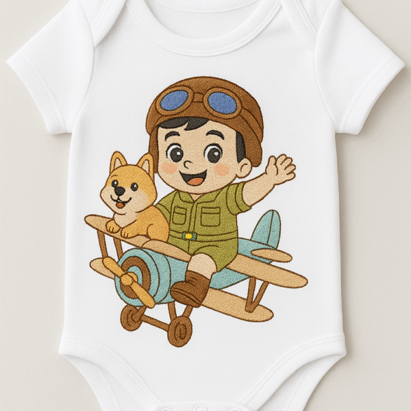 Tema: Menino aviador com cachorrinho no aviΓ£o