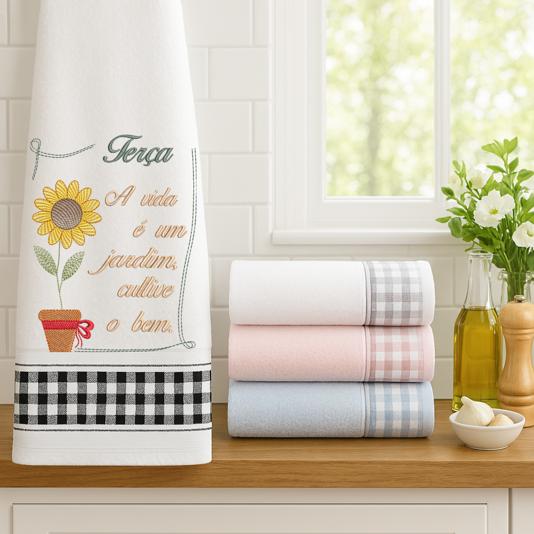 A Semaninha Flores e Frases é perfeita para personalizar panos de copa, panos de prato e outras peças decorativas, deixando sua cozinha mais charmosa e acolhedora. Além disso, é uma ótima opção para presentear com bordados exclusivos e cheios de significado.