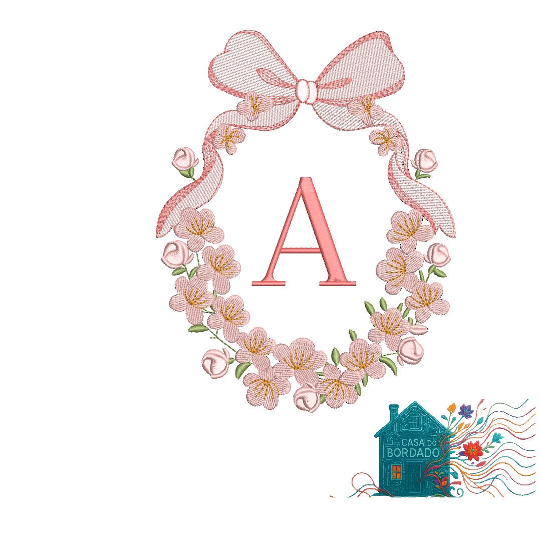 Matriz de Bordado BrasΓ£o A com flores e LaΓ§o