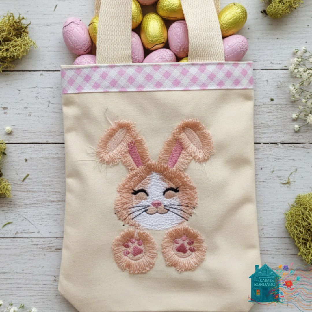 Matriz de bordado Coelhinho PΓ‘scoa com tΓ©cnica FRINGE