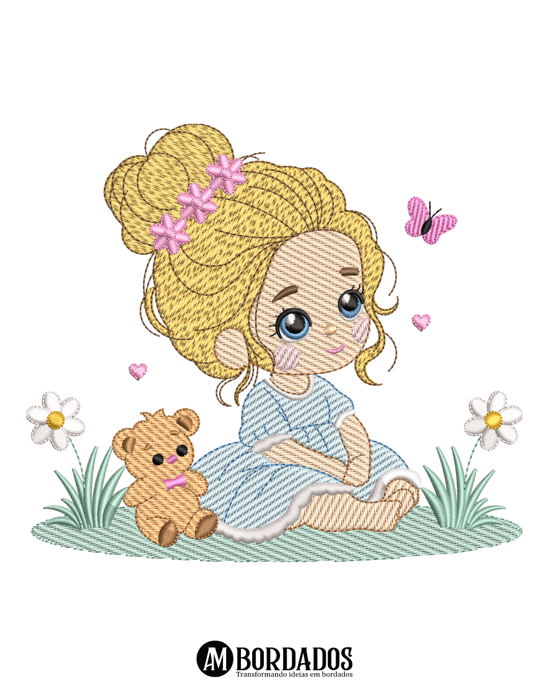 Matriz de Bordado Menina Fofa Sentada no Jardim