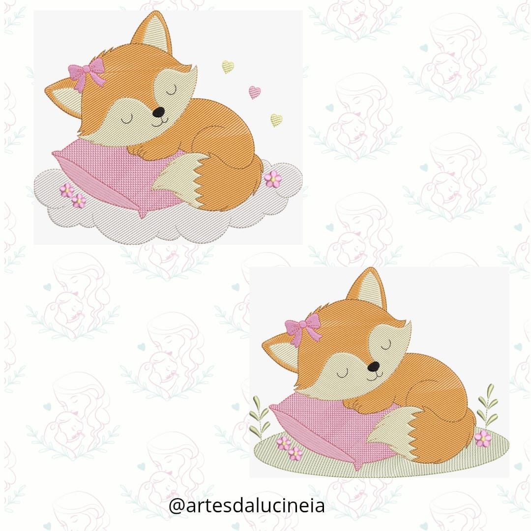 Matriz de bordado combo 2 em 1 raposa dormindo