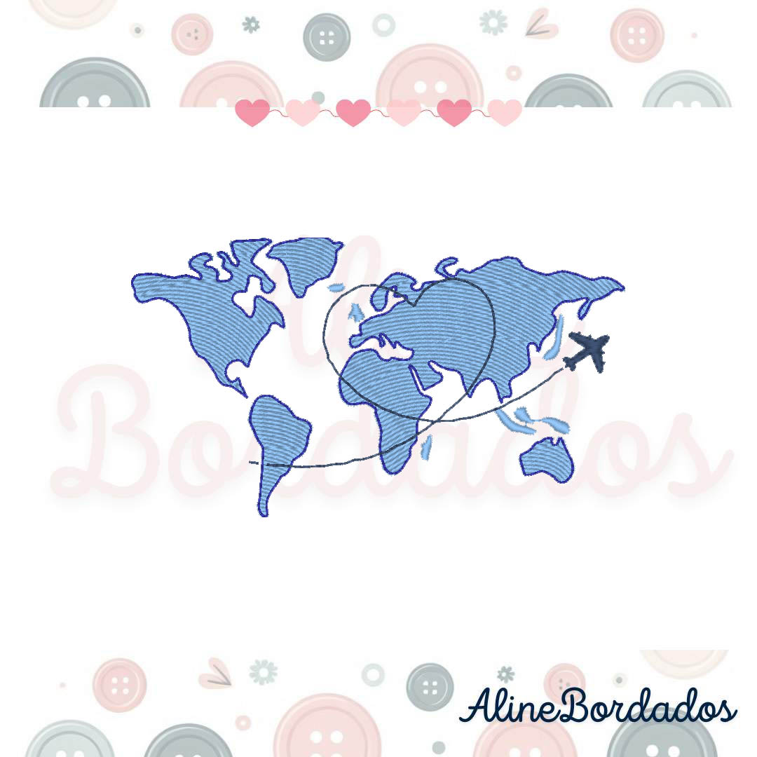 Matriz de Bordado Viagem World Trip – Mapa Mundi com AviΓ£o
