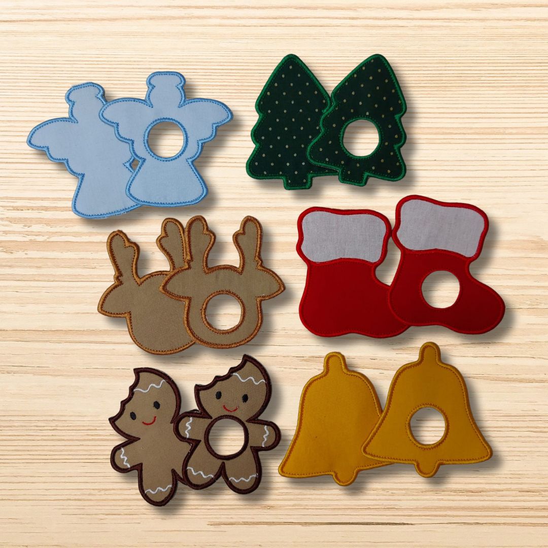 Kit composto com 12 matrizes para fazer os modelos da foto. Sino, Bota, Ginger, Anjop, Γrvore e Rena.