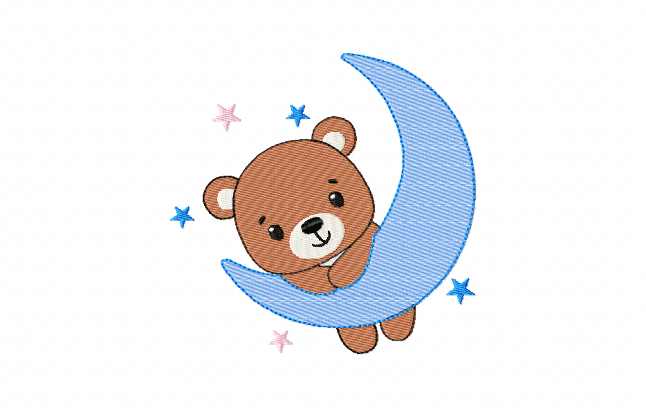 Matriz de bordado infantil de um ursinho na lua, com traΓ§os delicados e estilo fofinho. Criada com muito amor, carinho e dedicaΓ§Γ£o, perfeita para deixar peΓ§as infantis ainda mais encantadoras. ππ§Έ