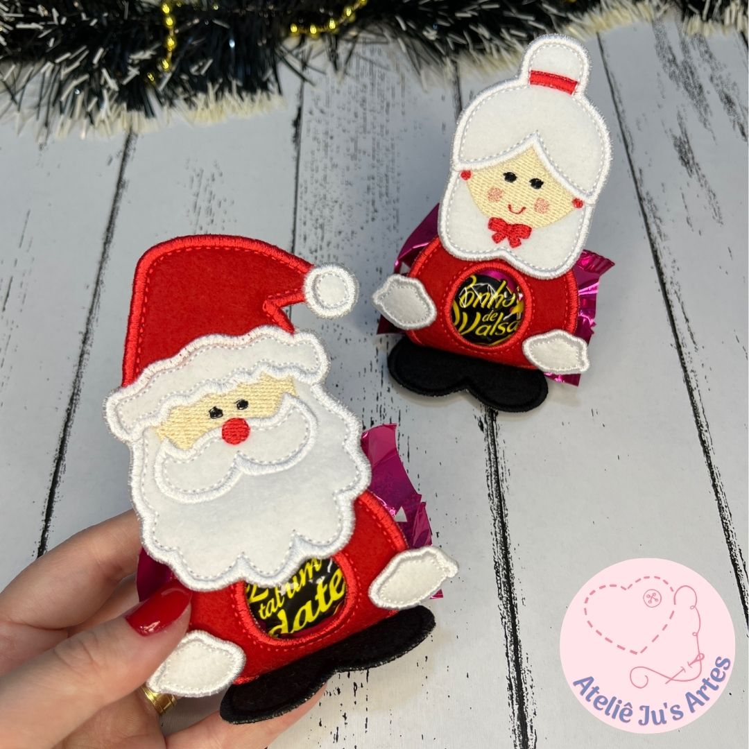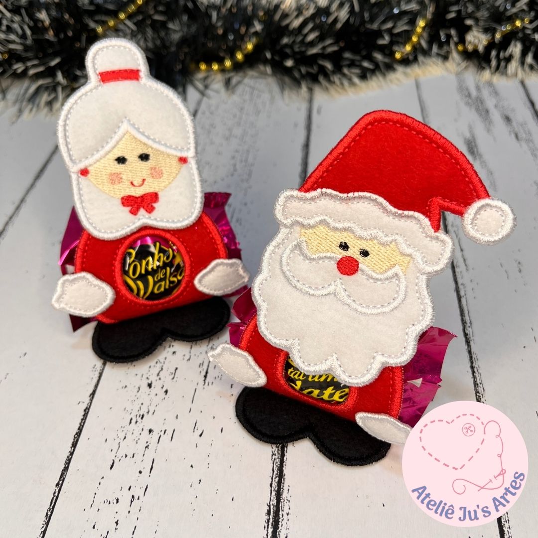 [Projeto na Bordadeira] Porta Bombom Papai e MamΓ£e Noel – Natal