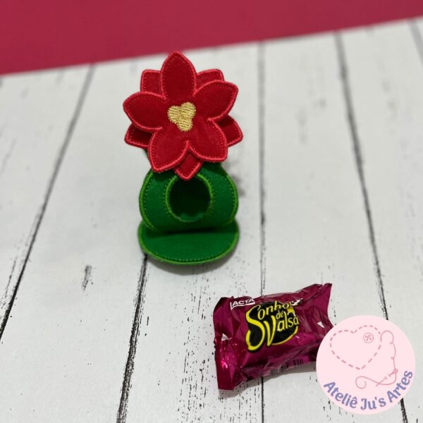 R$28,00[Projeto na Bordadeira] Porta Bombom Vasinho com Flor do Natal