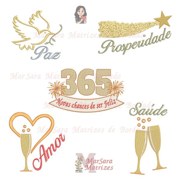 Matrizes de Bordado, Ano novo, Coleções de Matrizes, Combo de Matrizes, Frases/Palavras, Frases Positivas