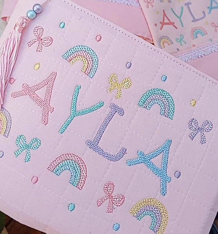 Os nomes coloridos das imagens são ilustrativos e encontras na Coleção Letrinhas Lúdicas, disponíveis aqui no ShopBazar, no Link https://shop.bazarcia.com/produto/matrizes-de-bordado-letras-alfabeto/