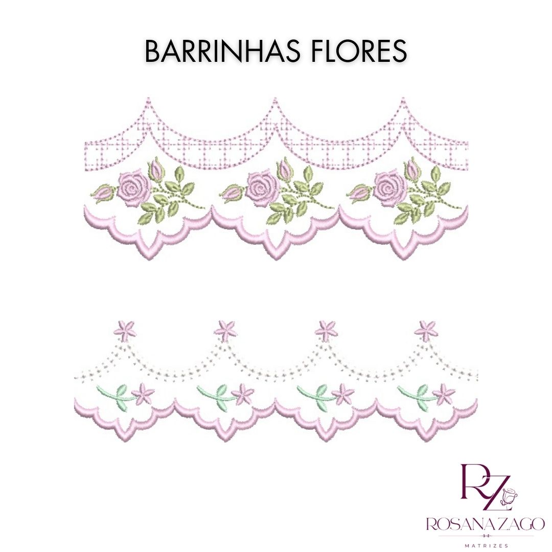 Matrizes de barrinhas em PONTOS LEVES e cheio, tema floral. Ideal para bordar em peças de ENXOVAL: CAMA MESA E BANHO. Também para acabamento de vestuário infantil.