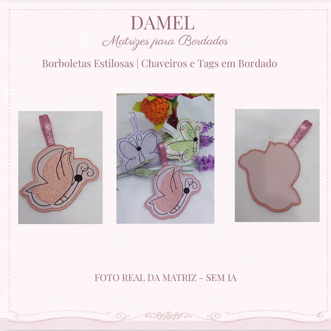 Borboletas Estilosas | Chaveiros e Tags em Bordado