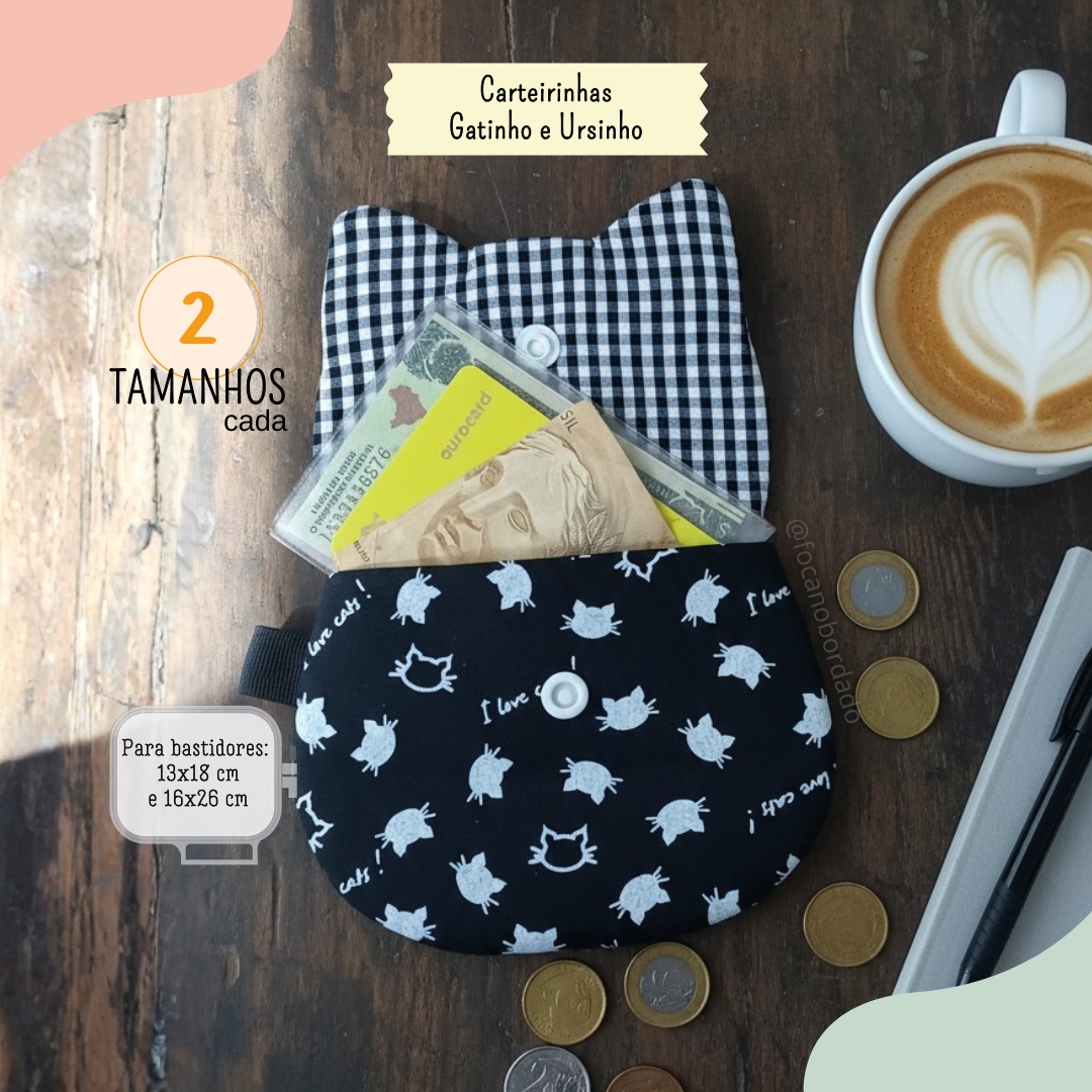 Sรฃo dois modelos em dois tamanhos cada, para bastidores 13×18 cm e 16×26 cm.