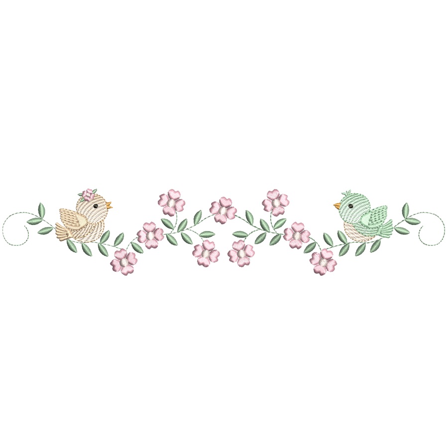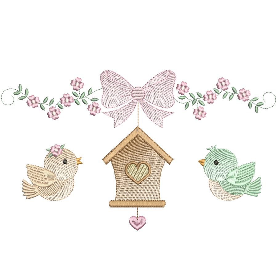 A Coleção Passarinhos traz 10 modelos de matrizes cheios de encanto, pensados para bordar leveza e doçura em cada detalhe. Com traços suaves e pontos delicados, cada desenho parece pousar com cuidado sobre o tecido, criando um efeito harmonioso e cheio de carinho.