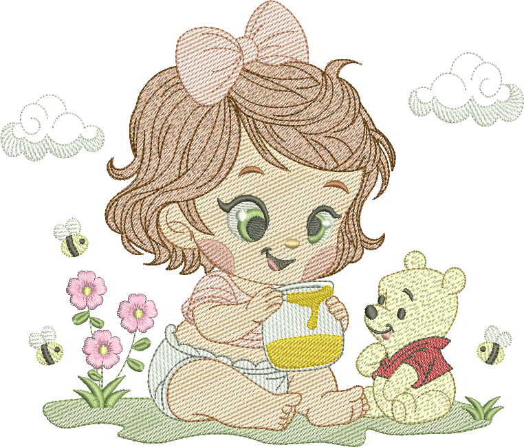 Pacote com 06 modelos de Matrizes da turminha Pooh, desenvolvidas com pontos leves e bem distribuídos, ideais para bordados delicados e com excelente acabamento.