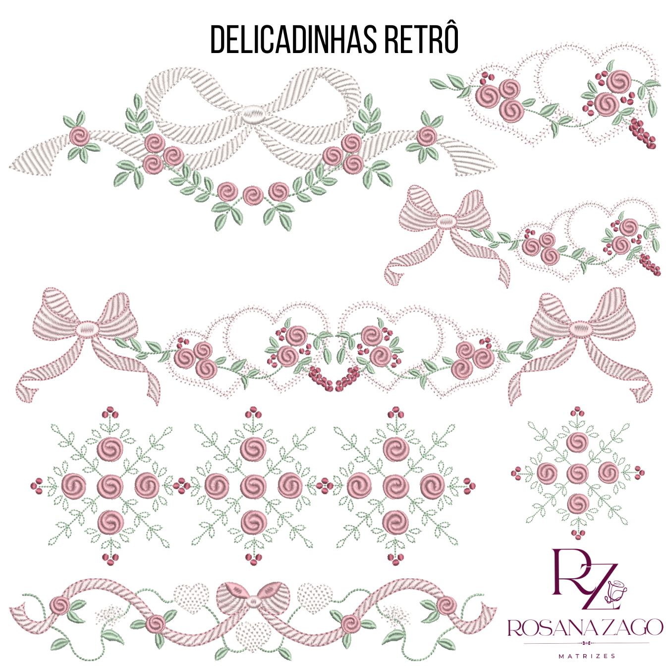 DELICADINHAS RRETRÔ. Ideal para bordar em peças de ENXOVAL INFANTIL.