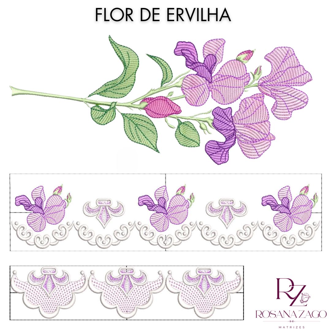 TEMA FLOR DE ERVILHA. Ideal para bordar em peças de ENXOVAL DE COZINHA: panos de prato e bate-mão, toalhas de chá e de mesa, cobre bolos, lugar americano, trilho de mesa, TOALHAS BANHO, ROSTO e LAVABO, roupas de cama…