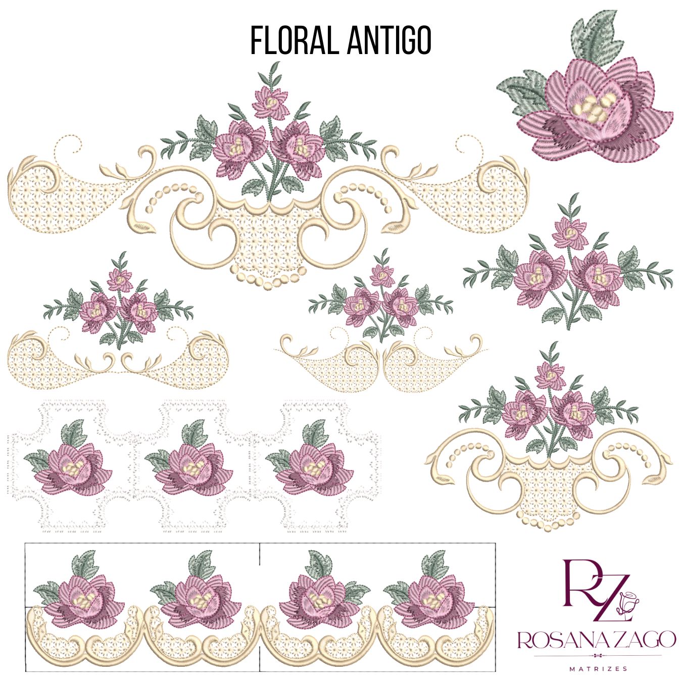 FLORAL ANTIGO. Ideal para bordar em peças de COZINHA, TOALHAS e ECOBAG.