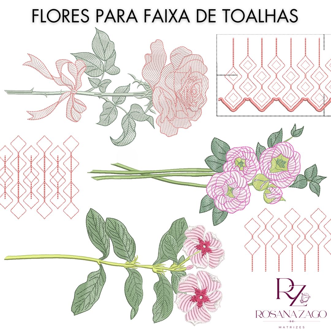 FLORES para FAIXA DE TOALHAS: ideal para toalhas de banho, rosto e lavabo… jogos de cama. Podem ser usadas também para peças de cozinha