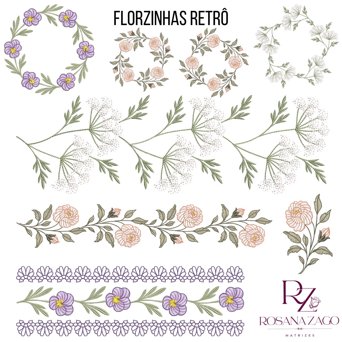 Barrados, guirlandas e motivos pequenos para usos diversos: cama, mesa, banho, ECOBAG e bolsas, mini motivos para lembrancinhas.