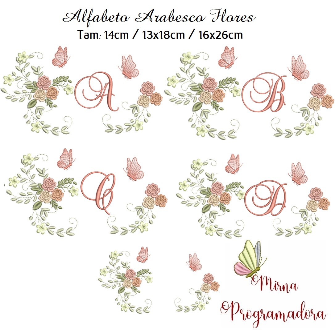 Matriz de Bordado Alfabeto Arabesco Flores
