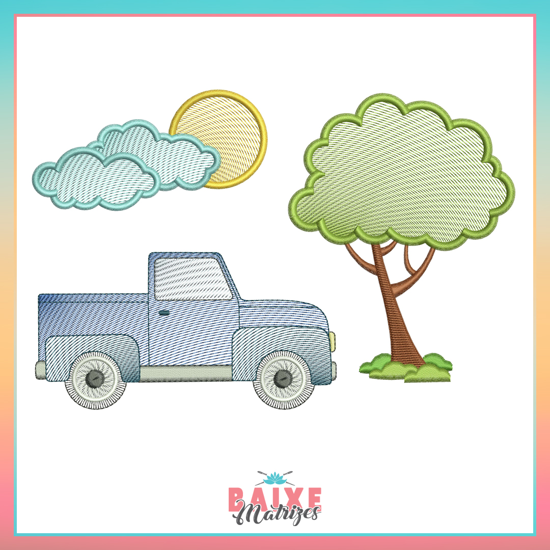 Ao efetuar o download da Matriz de Bordado Carrinho Caminhonete da Baixe Matrizes, vocรช receberรก um arquivo em .zip que contรฉm a matriz nos formatos .PES e .JEF