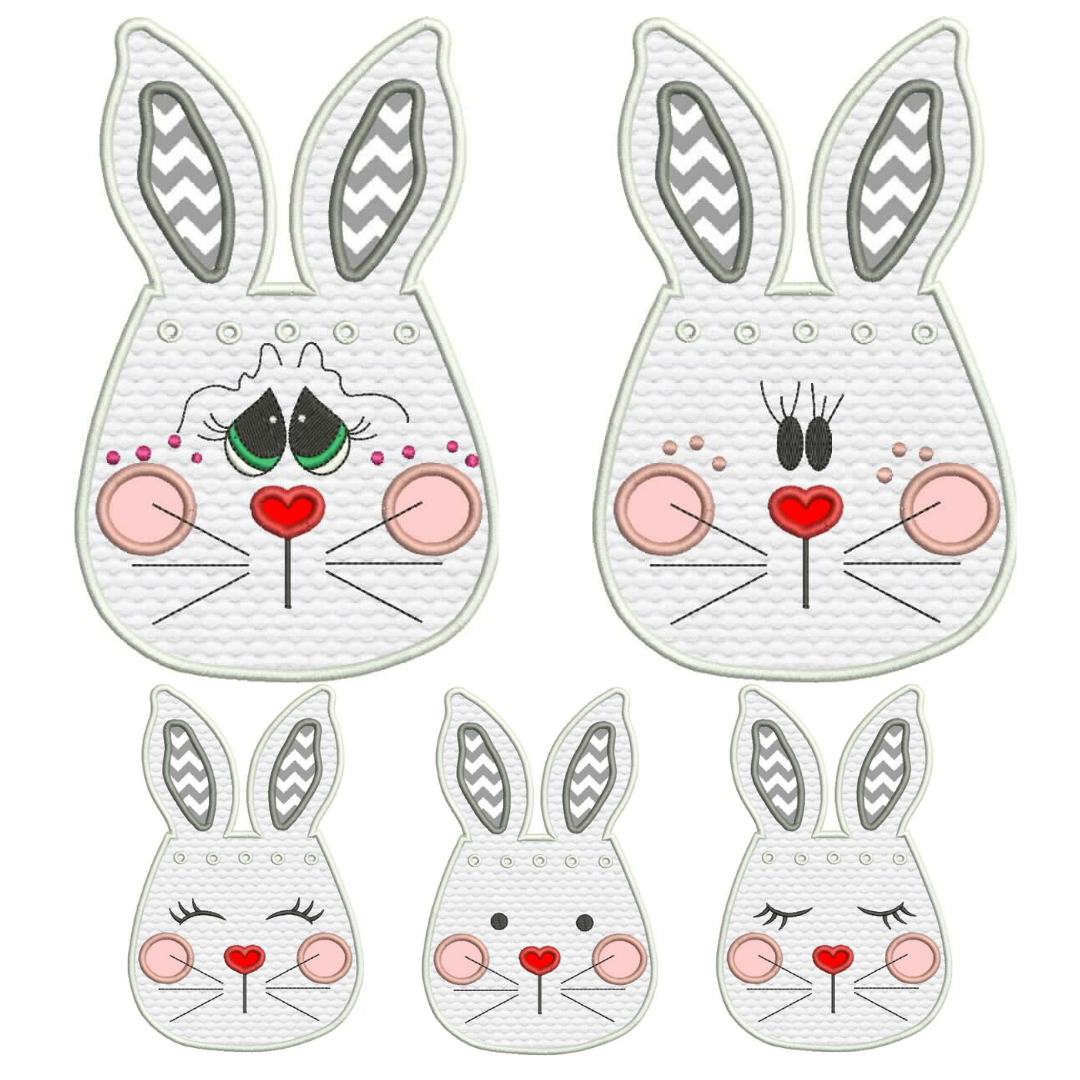 Matriz de bordado computadorizada coelhos aplique tecido