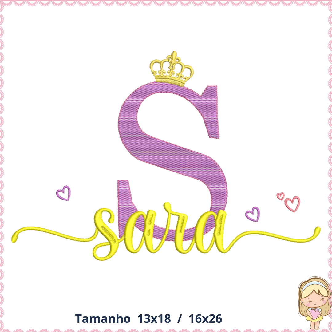 Matriz de Bordado Inicial Coroa nome Sara