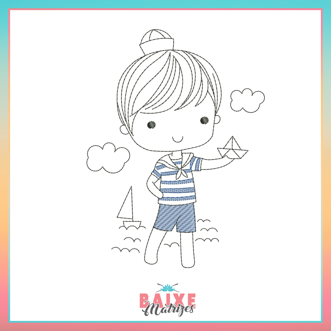 Matriz de Bordado – Marinheiro com Barquinho de papel – BM