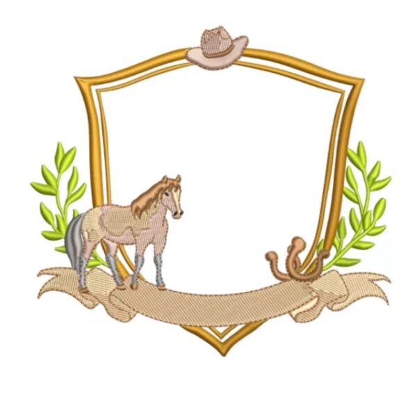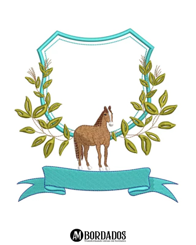 Matriz de Bordado Moldura Azul com Cavalo