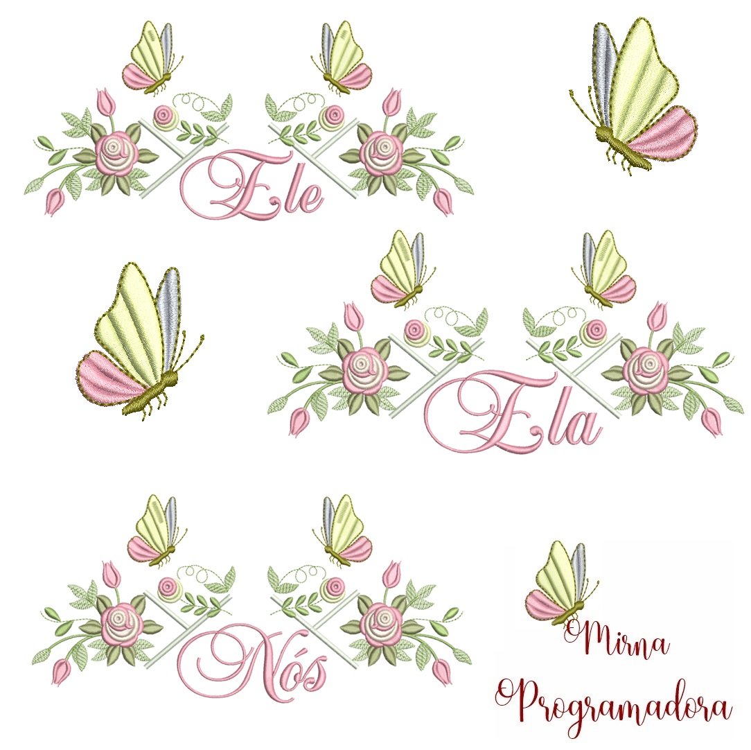 Matriz de Bordado Moldura Flores Toalha (ELE / ELA / NรS)