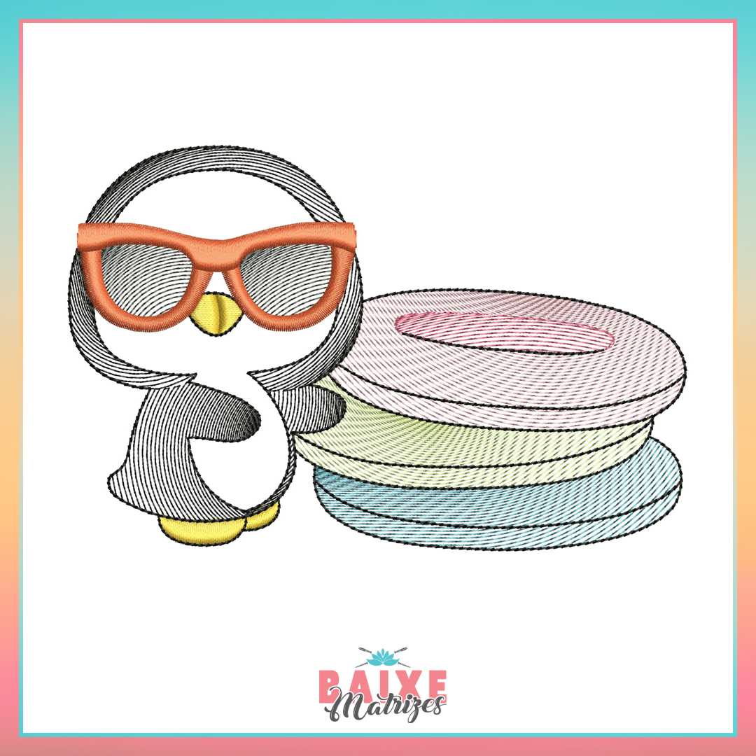 Ao efetuar o download da Matriz de Bordado Pinguim de Óculos Rippled da Baixe Matrizes, você receberá um arquivo em .zip que contém a matriz nos formatos .PES e .JEF