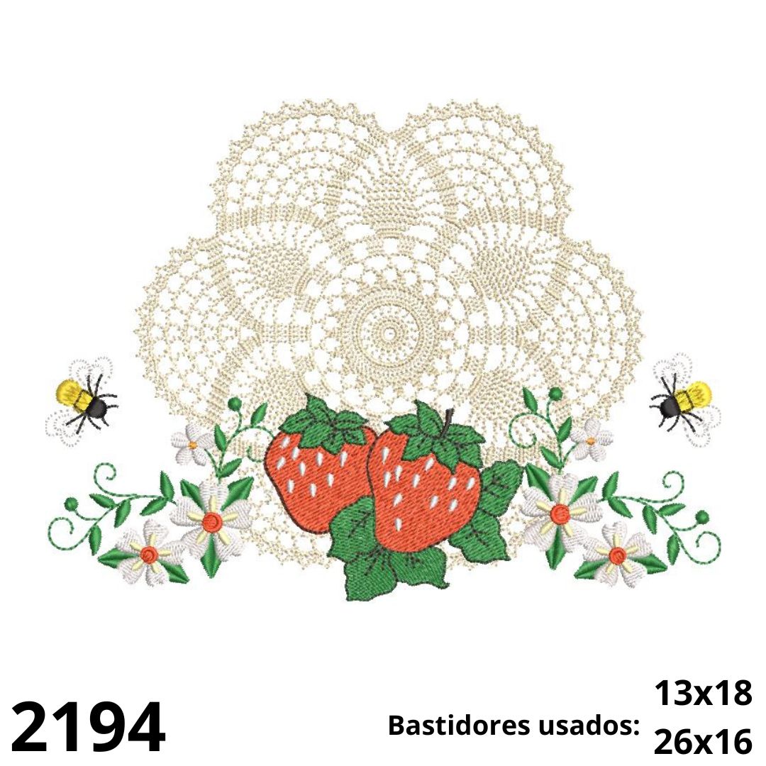 Matriz de bordado Renda crochet com MORANGOS E ABELHAS