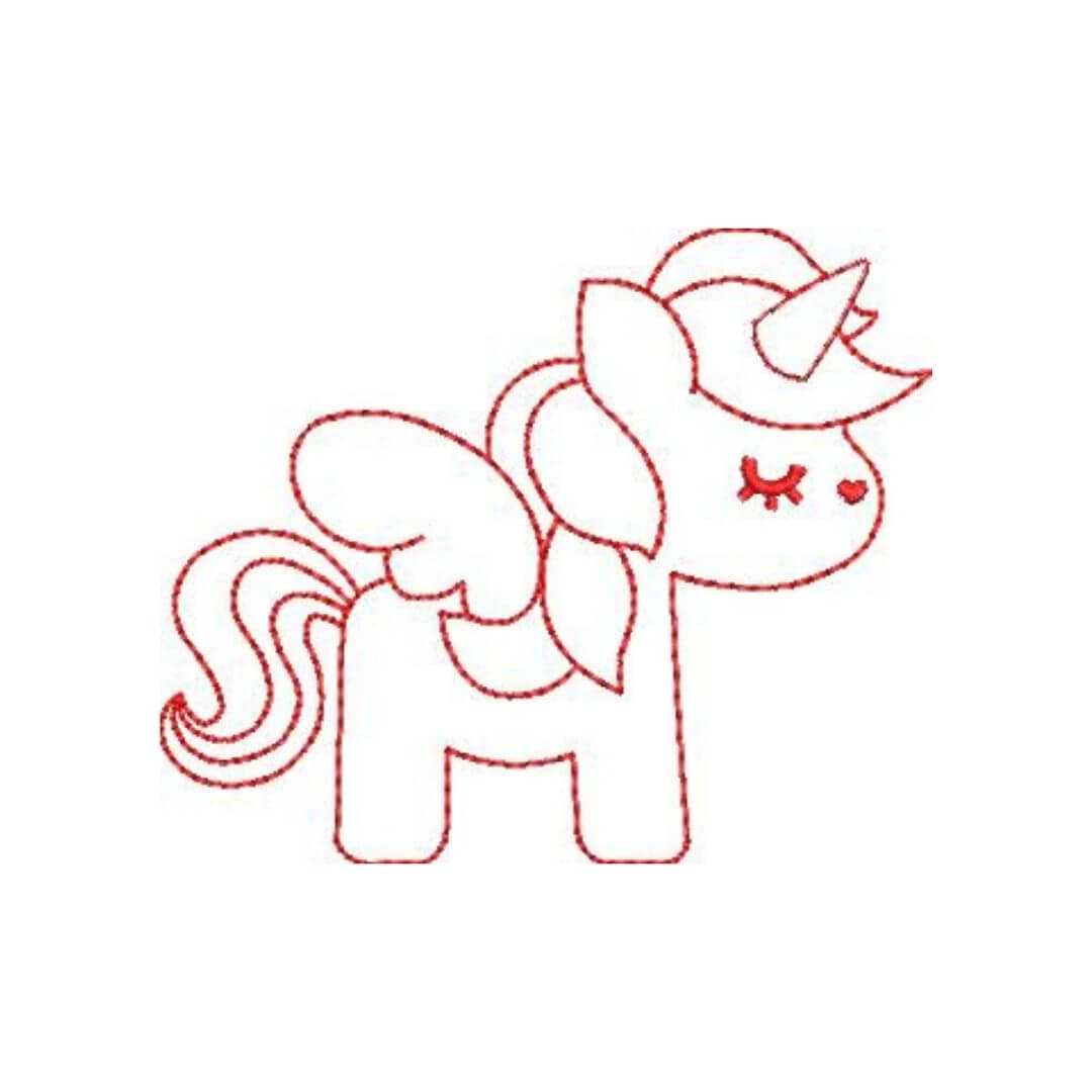 Matriz de Bordado – Unicórnio 01 (RED WORK), ideal para bordar em camisas, toalhas, bodys etc. A liberação da matriz ocorre imediatamente após o pagamento.