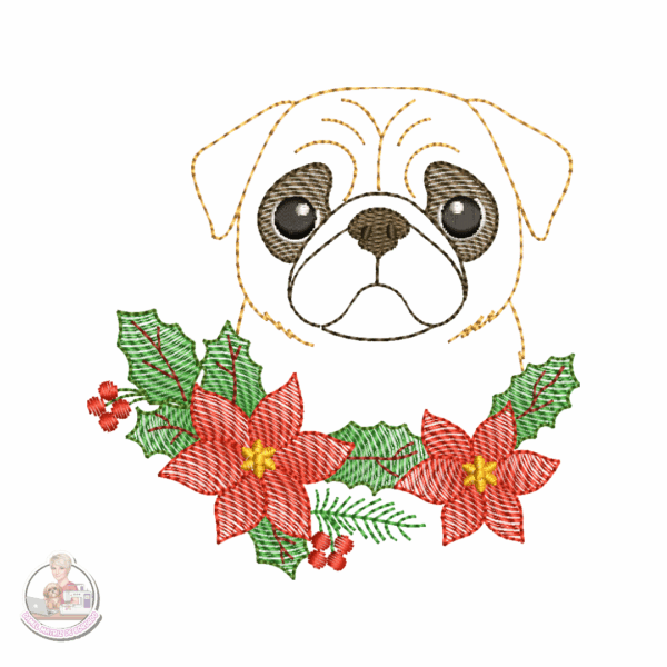 Matriz para Bordado Pug Pets no Natal