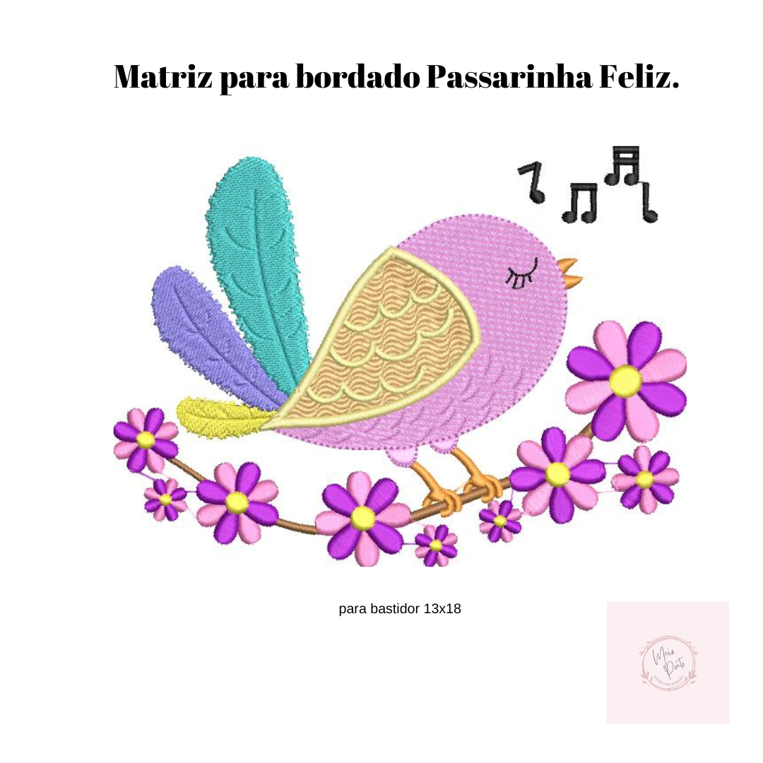 Matriz para bordado Passarinha Feliz
