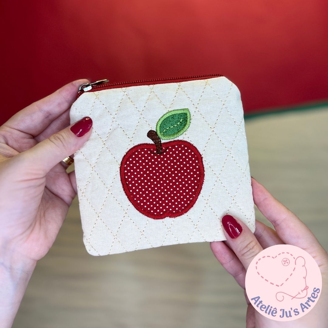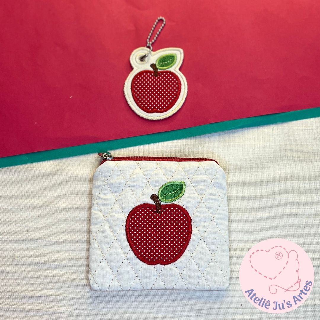 Faça lindas Necessaire Porta Treco com Aplique Maçã, junto no pacote tem a versão do Chaveiro.