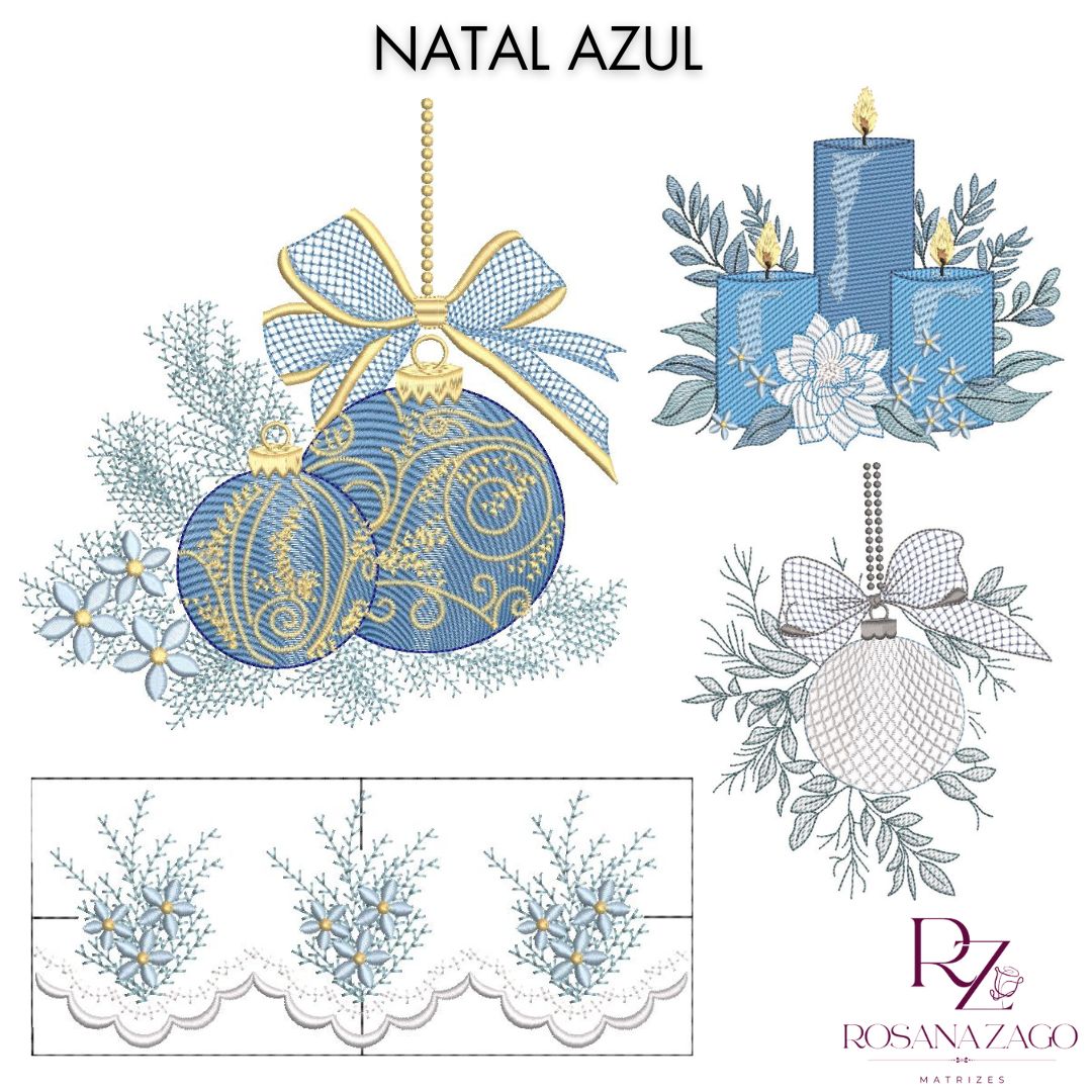 TEMA NATAL AZUL. Ideal para bordar em peças de ENXOVAL DE COZINHA: panos de prato e bate-mão, toalhas de chá e de mesa, cobre bolos, lugar americano, trilho de mesa, TOALHAS BANHO, ROSTO e LAVABO…