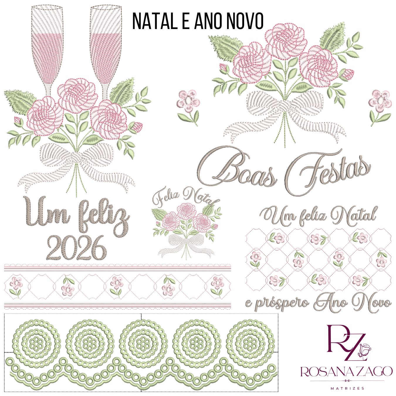 Matrizes para cama, mesa e banho. Com ou sem textos natalinos e de Ano novo.