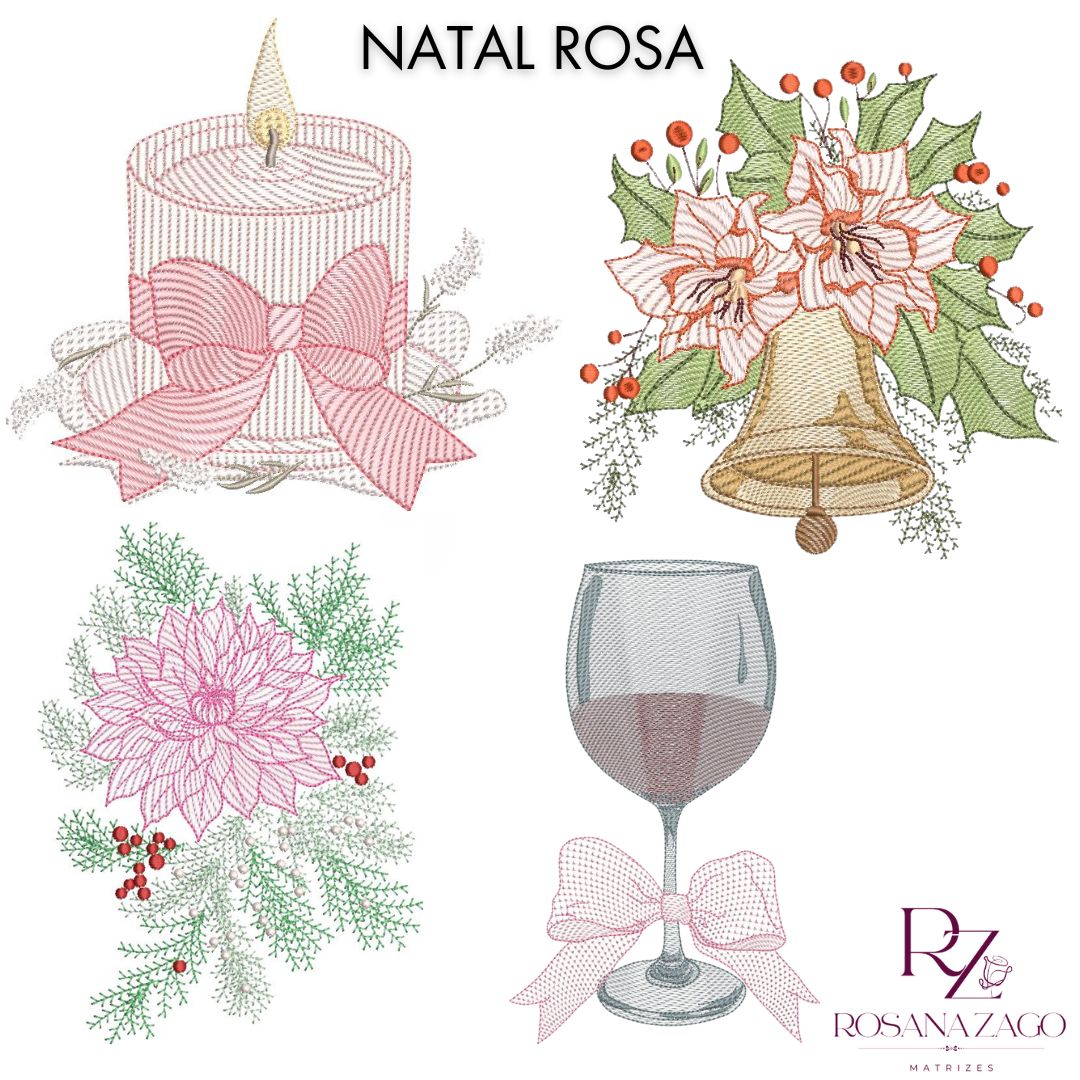 TEMA NATAL ROSA. Ideal para bordar em peças de ENXOVAL DE COZINHA, BANHO e CAMA: panos de prato e bate-mão, toalhas de chá e de mesa, cobre bolos, lugar americano, trilho de mesa, TOALHAS BANHO, ROSTO e LAVABO, roupas de cama…