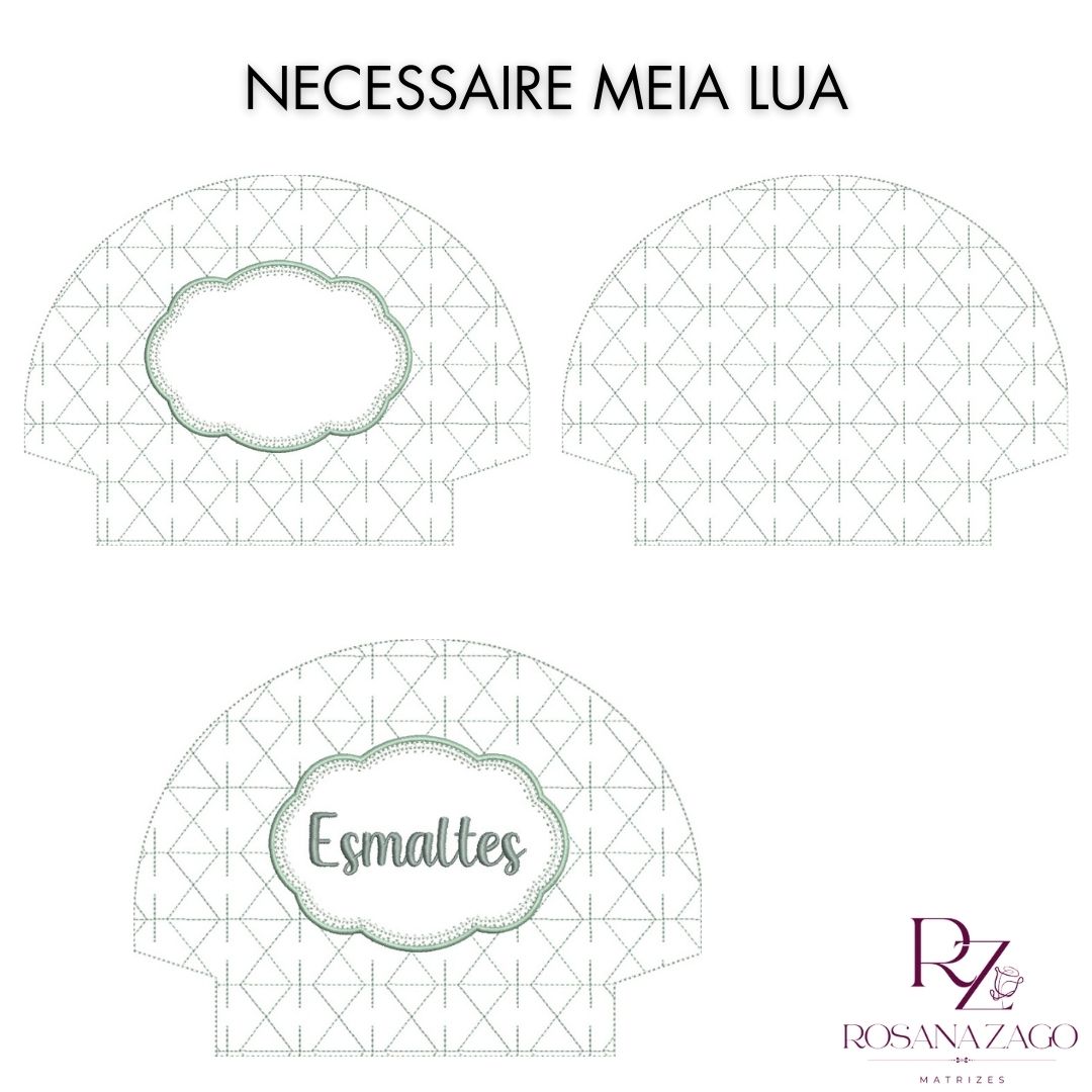 Matrizes de bordado para confecção NECESSAIRE tipo MEIA LUA. Matriz simples e leve, pode ser bordada em sintético, tecidos de algodão e diversos tecidos que não esticam.