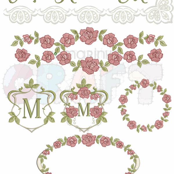 Matrizes de bordado florais com cantos e barrinhas