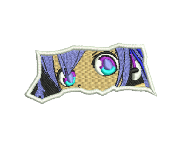 Patch bidimensional do bordado do anime, cabelo azul, olhos grandes 8CM