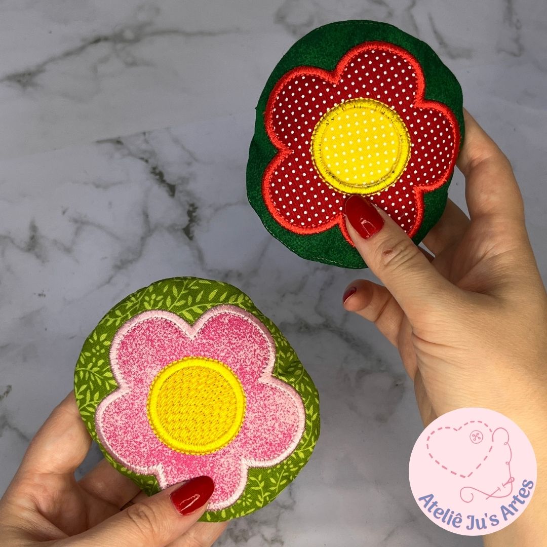 FaΓ§a lindas peΓ§as bordando o Porta Sabonete e o Porta Sache Perfumado com uma Flor, confeccionado completamente na Bordadeira, inclusive o sache.