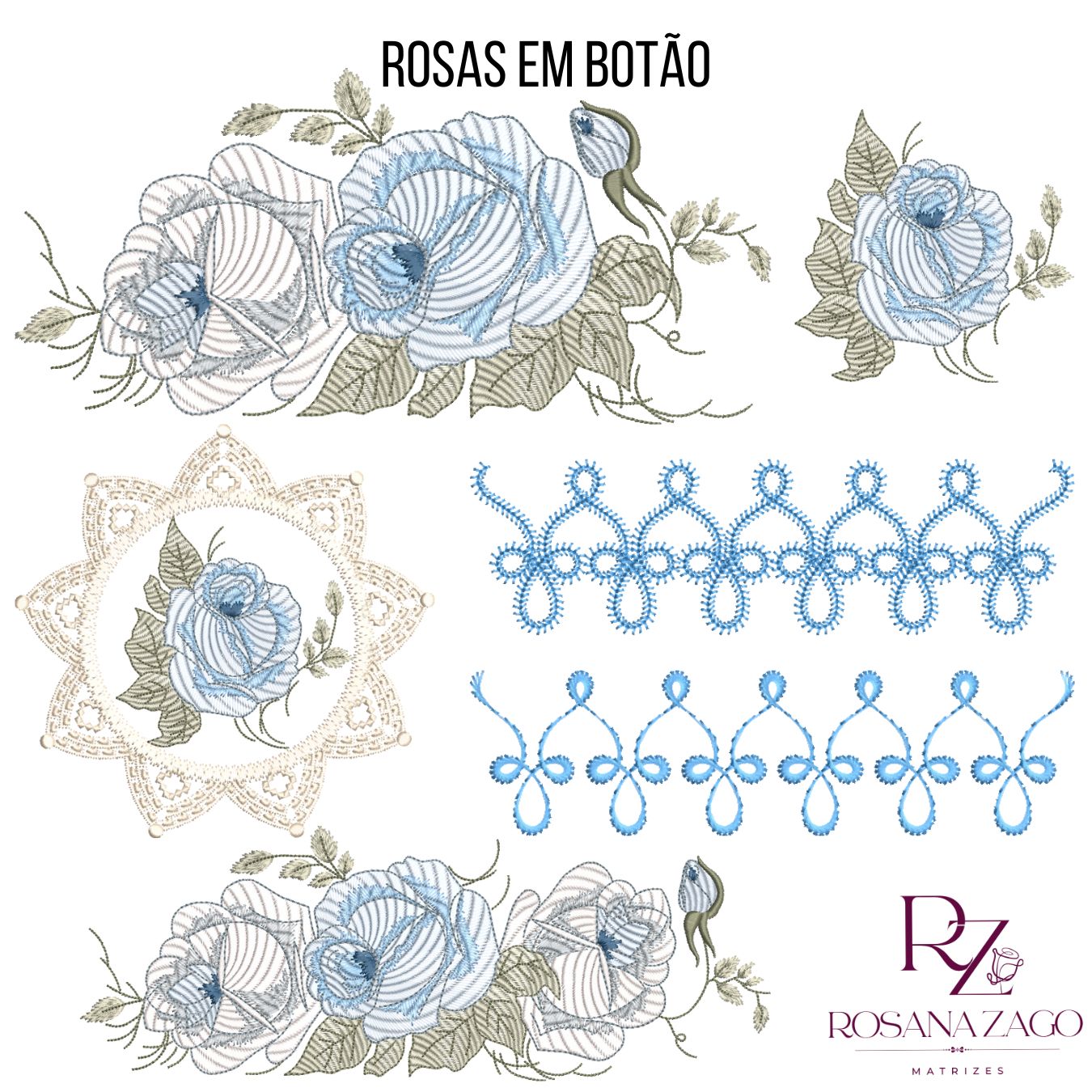 ROSAS EM BOTÃO. Ideal para bordar em peças COZINHA, BANHO e ENXOVAL BABY MENINA.
