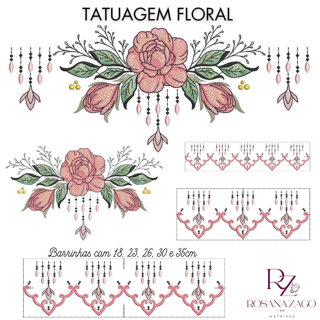 Tema TATUAGEM FLORAL. Ideal para toalhas, PANOS DE PRATO e outras peças de cozinha, ECOBAG e BOLSAS, toalhas de banho, rosto e lavabo…ROUPAS DE CAMA