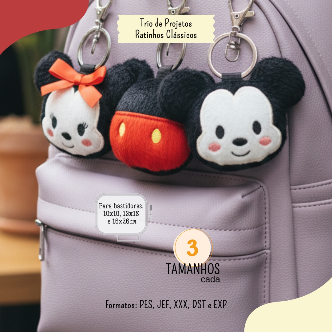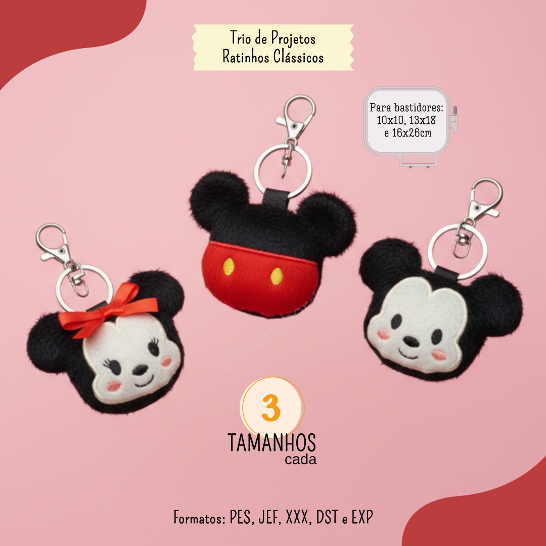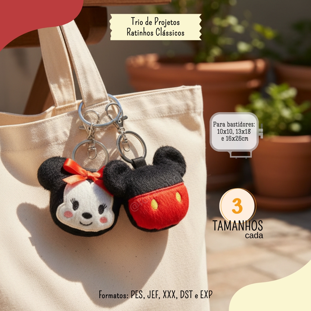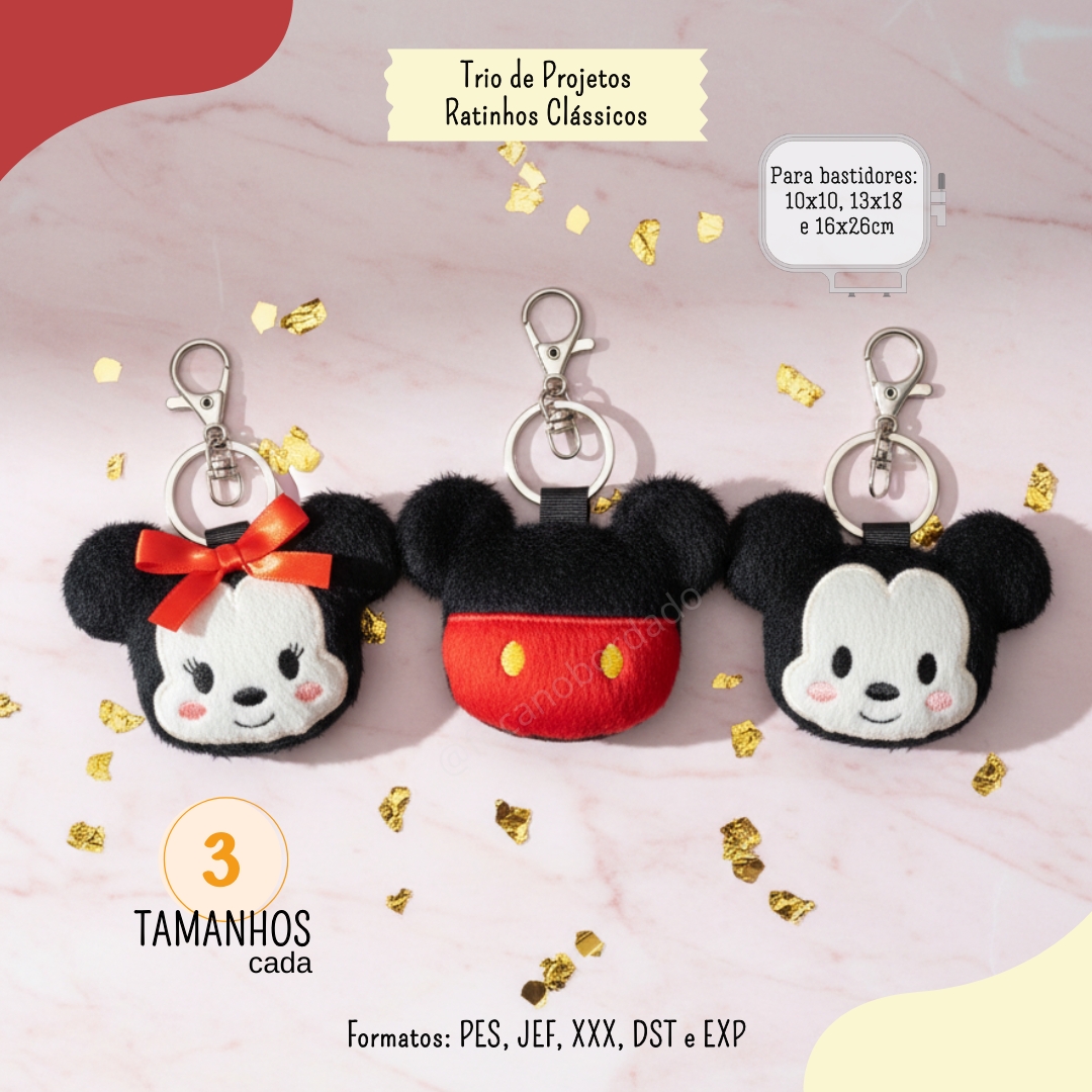 Trio Ratinhos Clássicos Matrizes Chaveiro